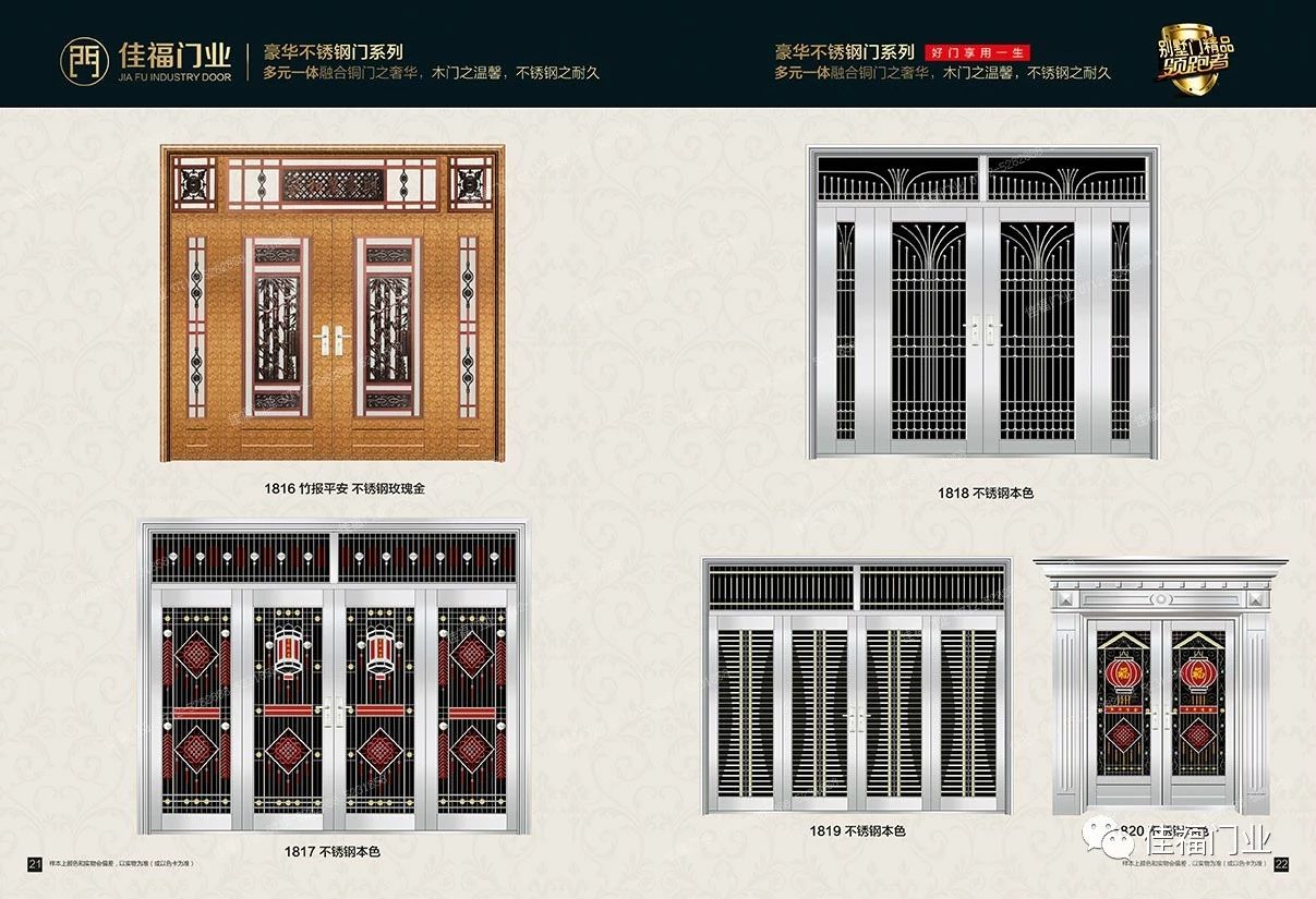 本公司成立于2004年,已有19年的生產(chǎn)進(jìn)戶門的經(jīng)驗(yàn)積累。公司現(xiàn)擁有鋼質(zhì)非標(biāo)門生產(chǎn)線、標(biāo)門生產(chǎn)線及不銹鋼門三條生產(chǎn)線,我公司專業(yè)設(shè)計(jì)、制造、銷售鋼質(zhì)系列進(jìn)戶門、防盜門、不銹鋼門等產(chǎn)品,擁有“宇佳?盈福”和“佳有福”、“家福.興隆”三個(gè)自主品牌和產(chǎn)品系列。公司引進(jìn)了先進(jìn)的生產(chǎn)技術(shù),配置了成龍配套的現(xiàn)代化生產(chǎn)流水線。產(chǎn)品工藝成熟,質(zhì)量上乘。同時(shí),公司廣納賢才,聚集了一批具有開拓創(chuàng)新精神的各類高級(jí)管理和技術(shù)人才,建立了一套先進(jìn)的管理模式。